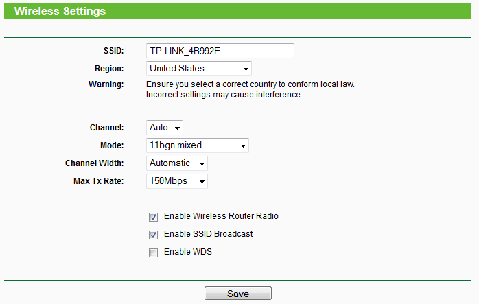 - Click Wireless->Wireless settings