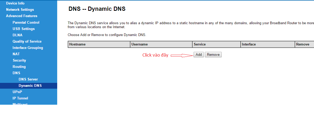 và click vào Add rồi điền đầy đủ. Nếu bạn chưa có tên miền có thể mua tên miền camera để xem camera online hoặc đang ký miễn phí ở http://www.noip.com/